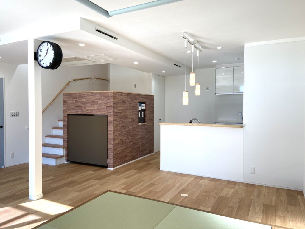 LDKの中心に設けられたスキップフロアが印象的な、『家族とのつながり』をテーマとした家。